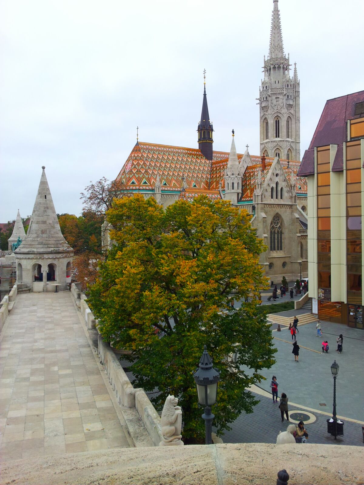 Rifocillati e soddisfatti, raggiungiamo la Chiesa di Mattia , chiamata cosi per via dei due matrimoni tenuti in essa a distanza di qualche anno dal re Mattia Corvino intorno al 1400, re considerato tra i più giusti della storia ungherese. Costruita tra il 1255 e il 1269 per la volontà del re Bèla IV di Ungheria, nel 1541 venne trasformata in una moschea dai turchi , per poi passare ai gesuiti. Tra il 1873 e il 1896 fu restaurata e ricostruita parzialmente in stile gotico. Da notare il tetto rivestito con le bellissime piastrelle di ceramica Zsolnay .